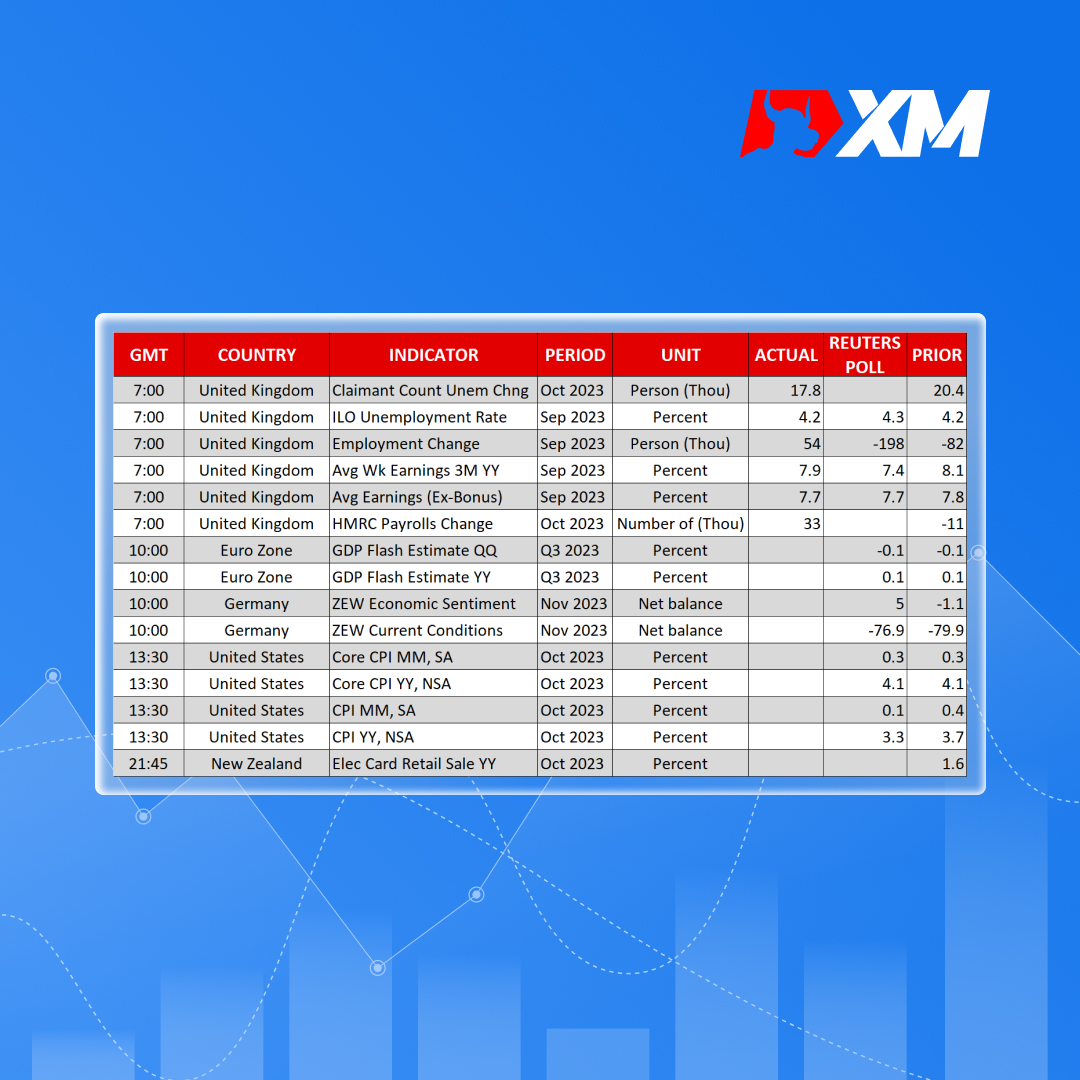 今日,美元交易员或将关注10月的美国消费者物价指数(CPI)数据上,以确认未来利率走势。最近,美联储主席鲍威尔及同僚不认同市场对他们已结束升息的预测,但投资者仍然普遍认为,这次的紧缩行动已结束。他们估计一月份再次上调利率的可能性只有30%,同时预测在明年底之前将降息约80个基点。