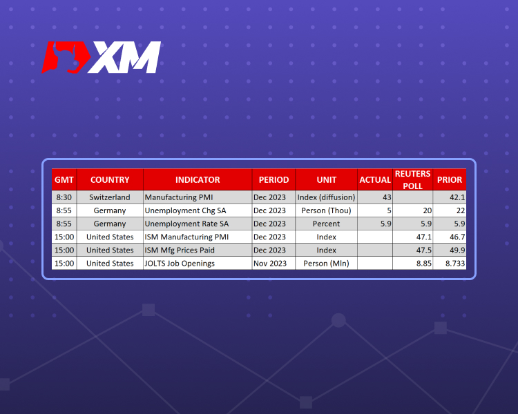 尽管如此,由于12月美国供应管理协会(ISM)制造业采购经理人指数(PMI)和11月JOLTS职位空缺即将发布,投资者观点可能会在会议纪要之前受影响。预计ISM制造业PMI已从46.7升至47.1,标普全球制造业PMI初值小幅上升也证实如此。预计职位空缺也有所增加,这或许让人们看到一线希望,即周五公布的12月非农就业数据也可能好于预期。这些数据有望在会议纪要前夕提振美元买盘情绪。