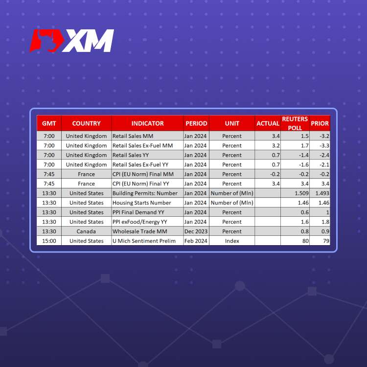 在美国同样如此,疲软的零售销售数据只是突显了美联储将在2024年某个时候降息。投资者接下来将密切关注今日稍晚发布的最新生产者物价指数,以获取有关美联储政策的更多线索。
